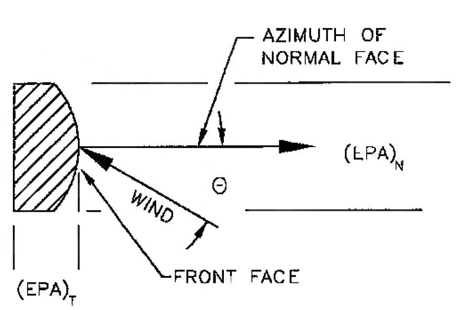 The Eurocode does not specify a precise method for calculating effective projected areas on ancillaries. However, a well-established approach is provided by the TIA-222 standard. This method involves calculating the EPA of the antenna faces — specifically, the normal face (EPAN) and the transverse face (EPAT). According to the TIA-222 standard, the total EPA of the ancillary can be determined using the following formula:
