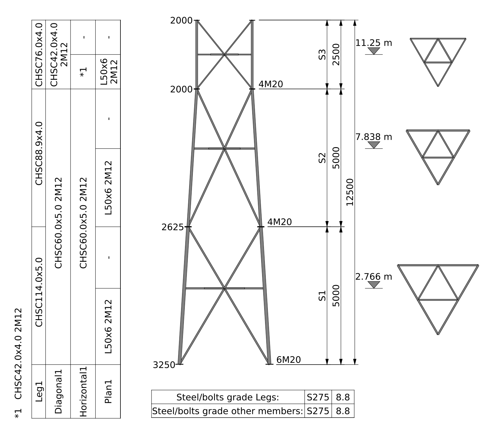 3-legged lattice tower made of 6 panels.