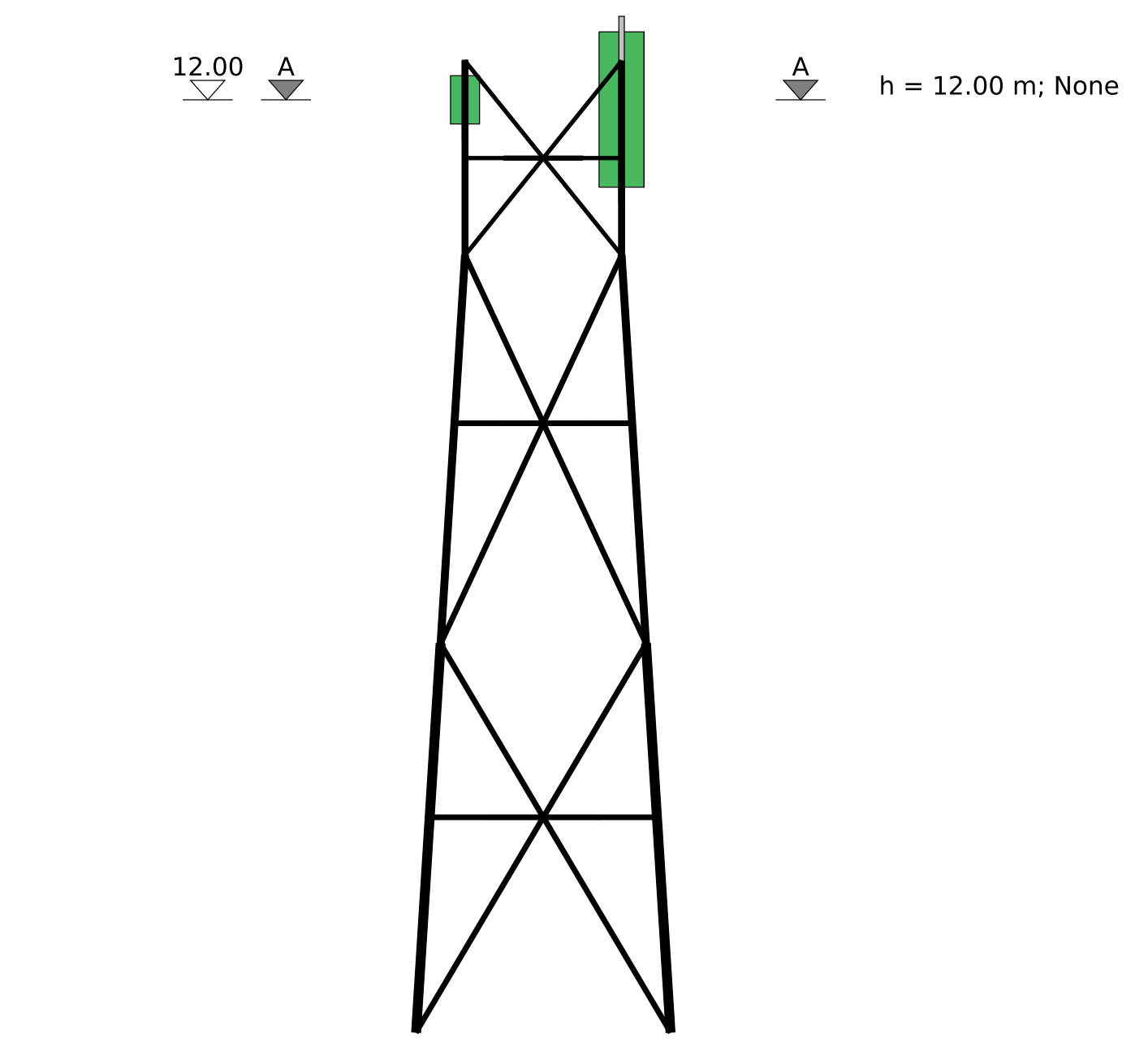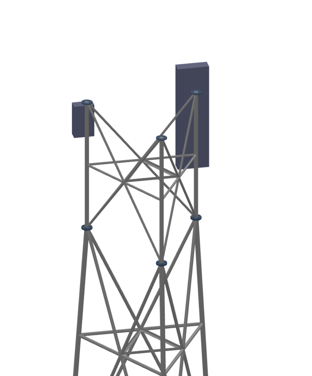 Shapemaker automatically calculates wind forces in accordance with EN 1993-1-4:2005 and EN 1993-3-1:2006, based on the structural model and user-defined ancillaries. Wind loads are computed separately for the main structure, whether it's a lattice tower, monopole, or guyed mast, and for the ancillaries, which can be discrete or linear elements.