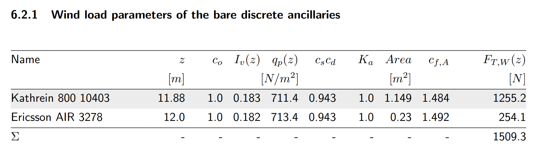 Wind forces on discrete ancillaries extracted from the Shapemaker report are presented below.